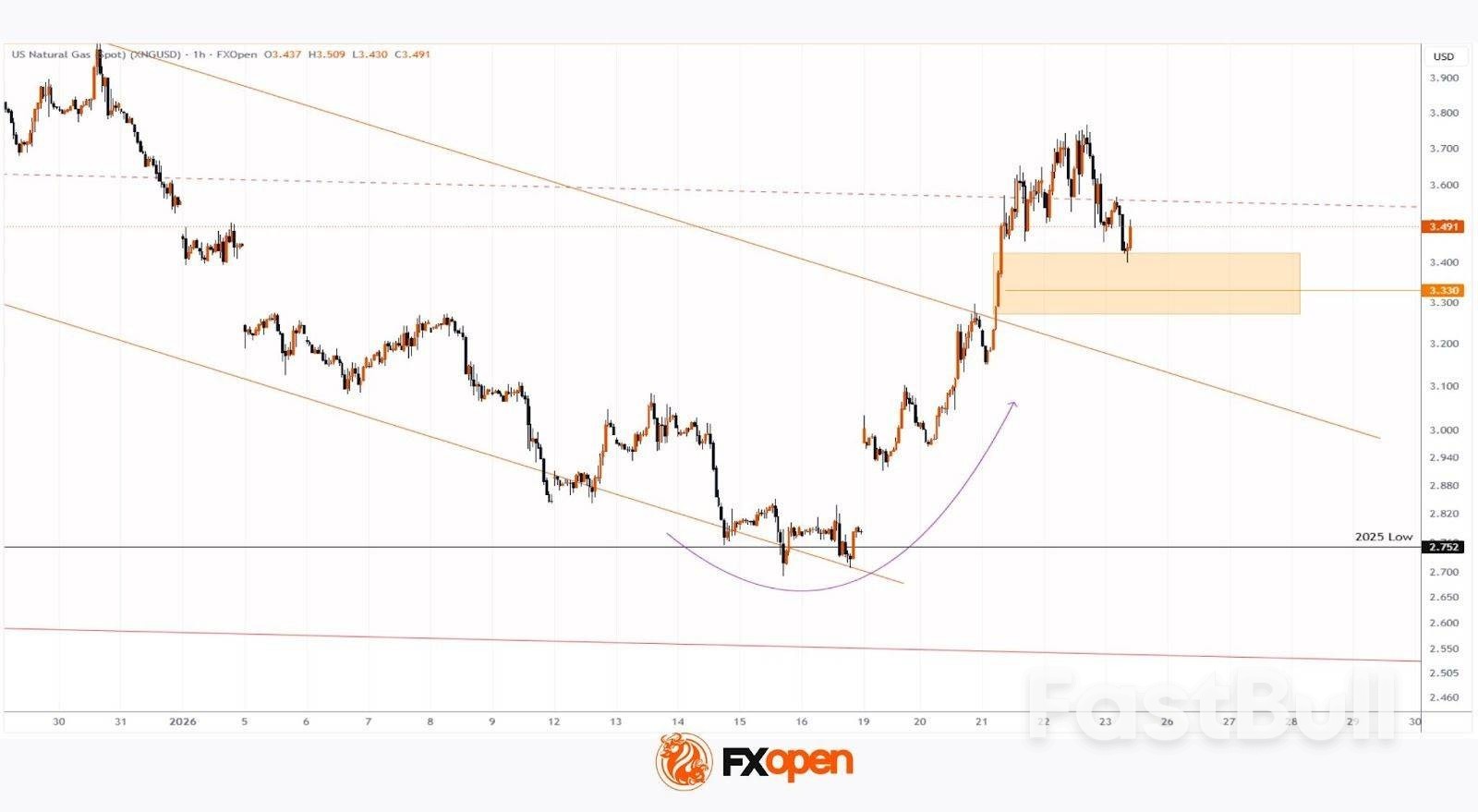 When analysing gas prices on 15 January, we identified a long-term descending channel, highlighted in red on the chart. At that time, we also: