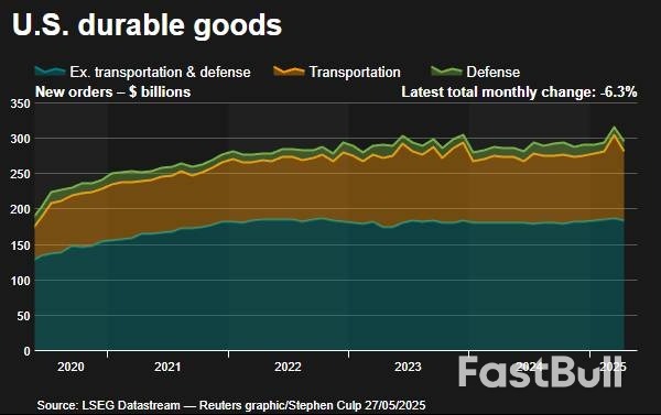 Durable goods orders were previously reported to have jumped 7.5% in March. They were last month weighed down by a decline in orders for commercial aircraft as well as the fading boost from the tariff-related front-running.