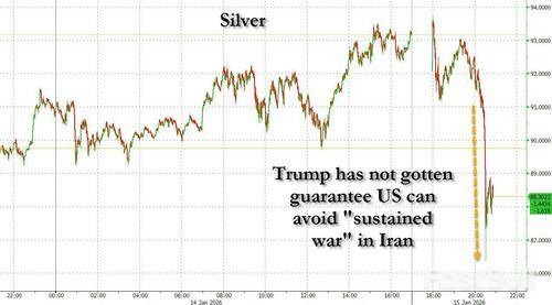 Precious metals also saw a significant sell-off. Silver plunged as much as $6 in seconds, falling from $92 to $86 as stop-loss orders were triggered. The rapid decline offered a preview of how quickly the recent rally could unwind as geopolitical fears subside.