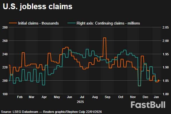 The labor market remains stuck in a holding pattern. A separate report from the Labor Department showed initial claims for state unemployment benefits rose by just 1,000 to a seasonally adjusted 200,000 for the week ended January 17. However, recent claims data has been difficult to interpret due to challenges in seasonal adjustments around the holidays.