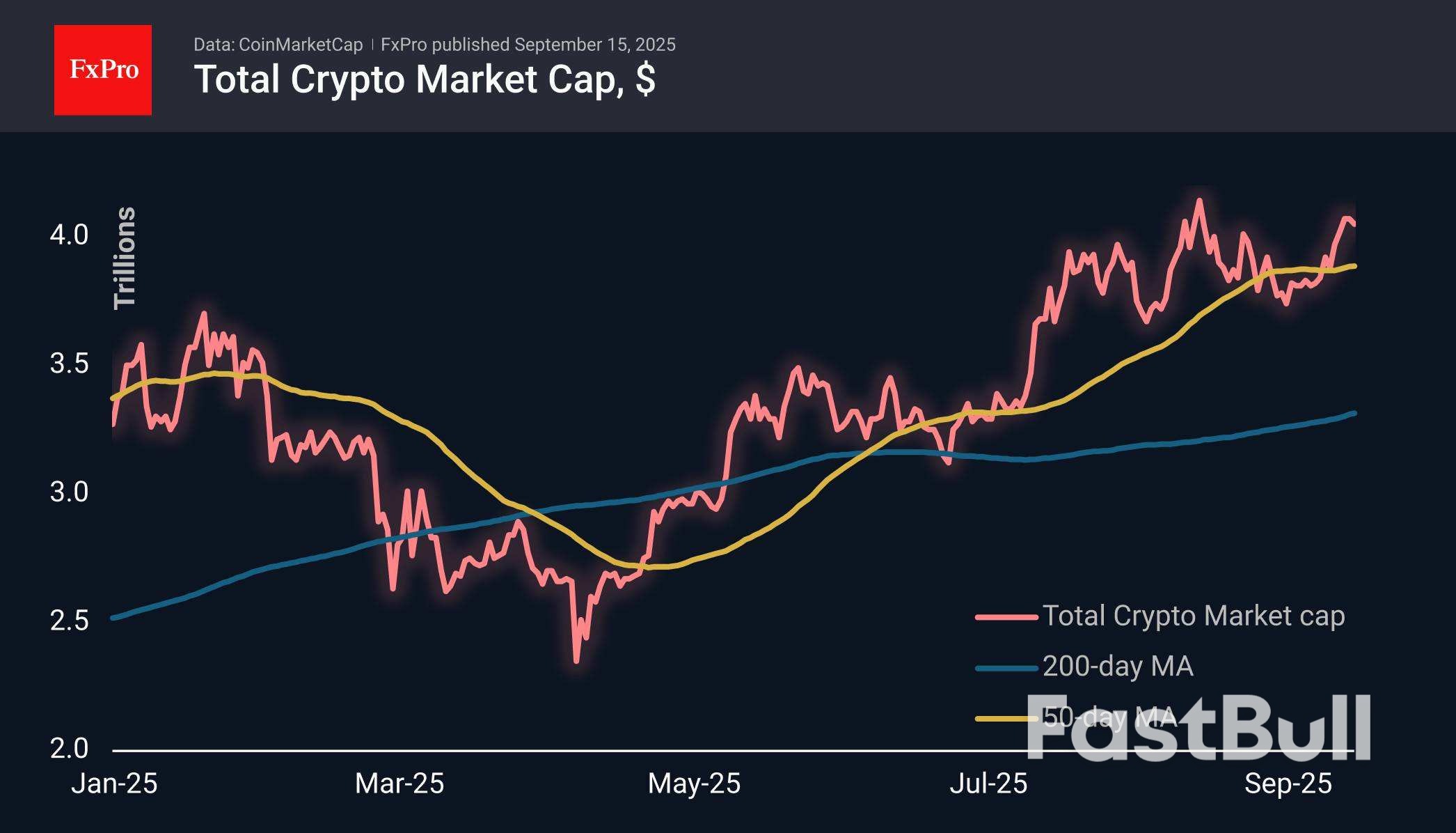 The crypto market cap reached $4.09 trillion over the weekend, approaching the peak levels set a month earlier. The initial impetus came from positive dynamics in the US stock market on Friday, thanks to technology sector stocks. However, retail traders used the moment to take profits in BTC and major altcoins, except for Solana, which went down on Monday. As a result, the market level fell back to $4.05 trillion.