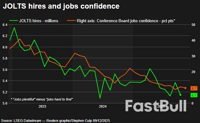 The Labor Department's monthly Job Openings and Labor Turnover Survey, or JOLTS report, was released on Tuesday as Federal Reserve officials started a two-day policy meeting. Financial markets expect the U.S. central bank will cut its benchmark overnight interest rate by another 25 basis points to the 3.50%-3.75% range on Wednesday out of concern for the labor market. The Fed has lowered borrowing costs twice this year.