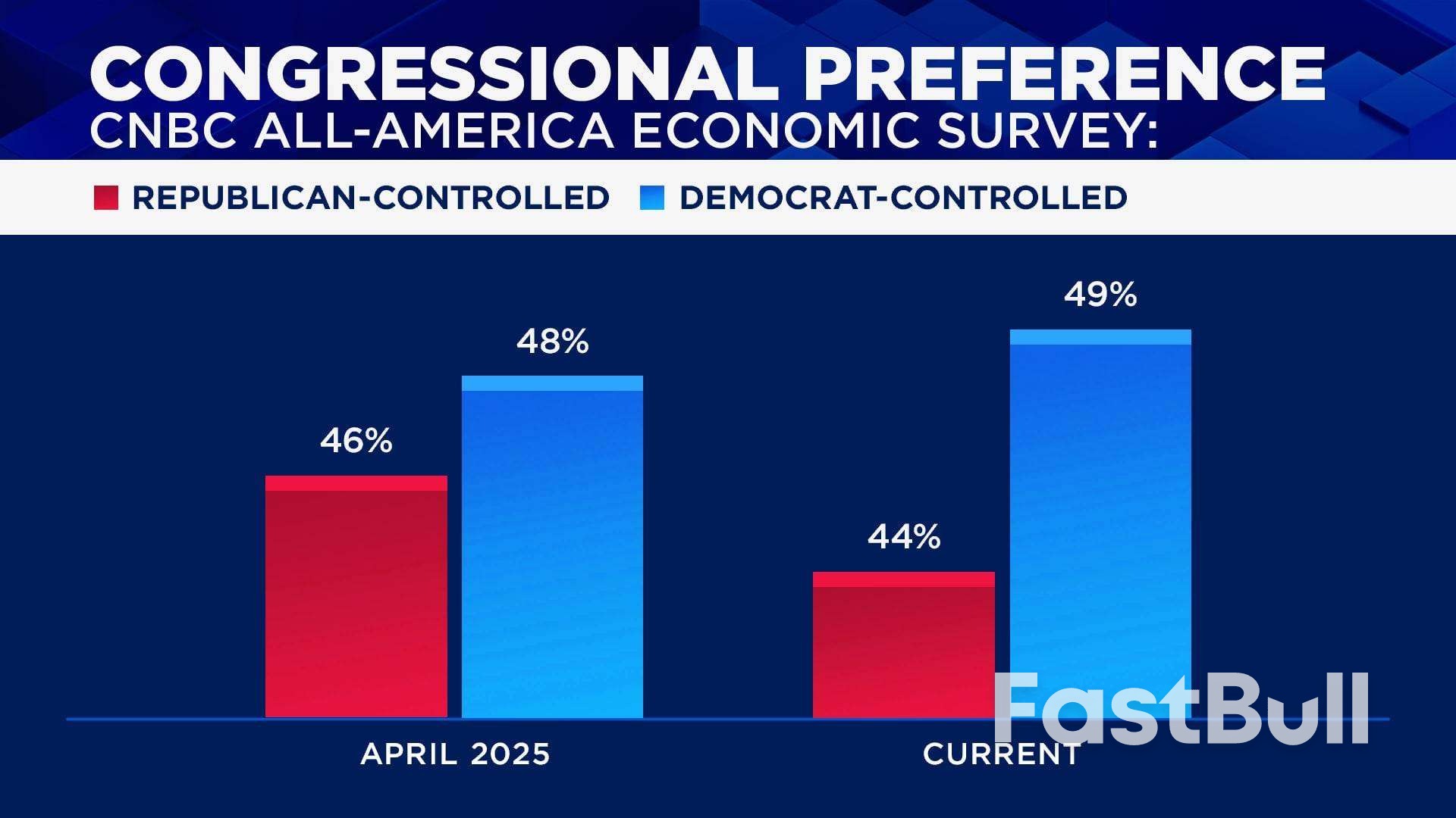 There also was a modest rise in the public's preference for the Democrats to control Congress, rising to a 49%-44% advantage from 48%-46% in April. It was the largest lead for Democrats since 2021.