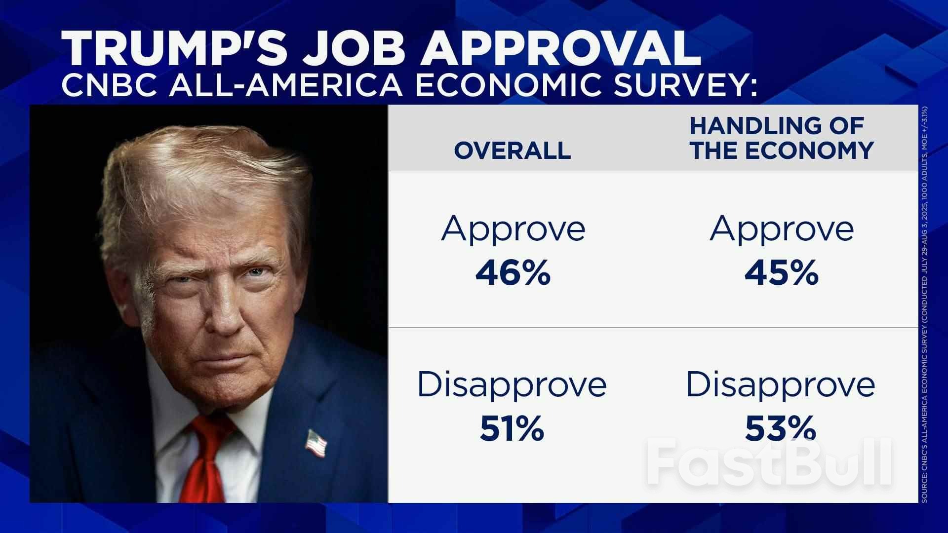 President Donald Trump's overall and economic approval ratings remain in negative territory despite a slight improvement in the latest CNBC All-America Economic Survey.