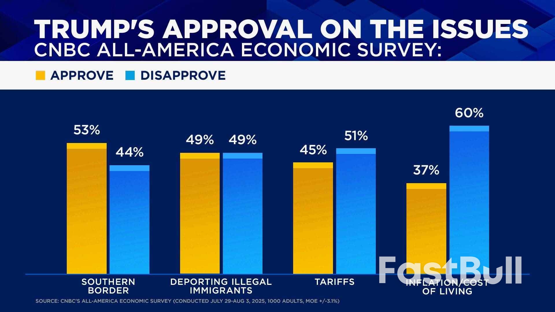 "Trump's approval is stable, but his individual ratings are down on issue after issue, except for tariffs," said Micah Roberts, partner with Public Opinion Strategies, which conducted the poll and served as its Republican pollster. "Economic optimism is higher, but there's been no relief in this data from inflation."