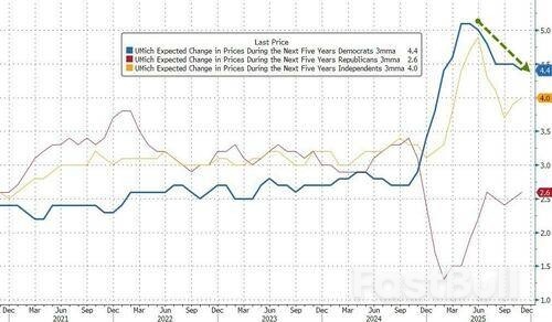 Democrats continue to lead the fear of inflation (though dropped to January lows this month)...