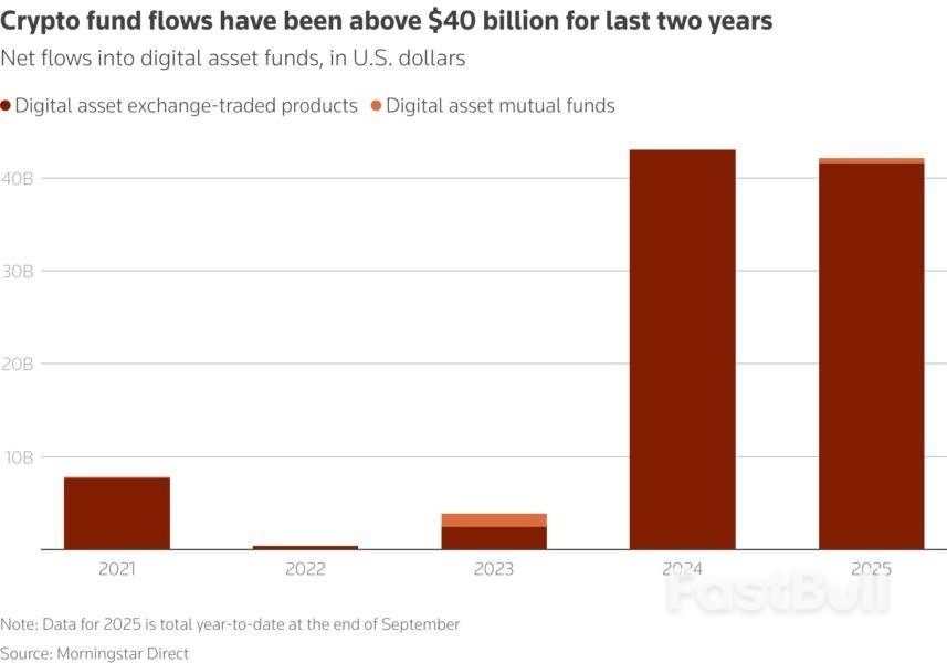 Still, with $222.3 billion in assets under management, crypto ETPs are tiny compared to the $17.4 trillion managed by the world's non-crypto ETPs, Morningstar estimates.