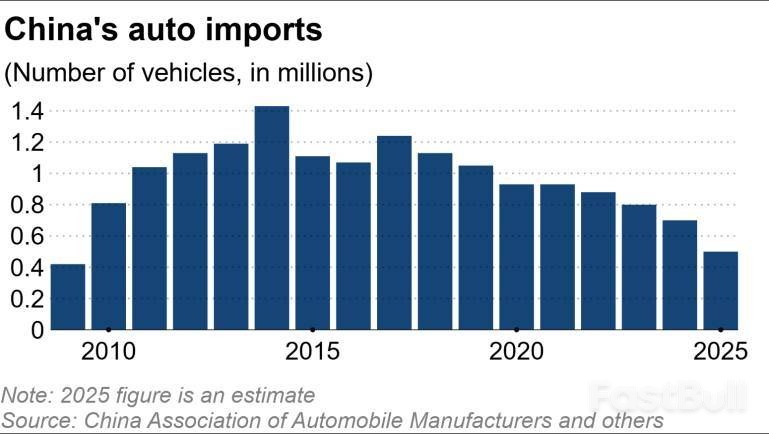According to the China Association of Automobile Manufacturers, sales of imported vehicles from January to November fell by 30% year-on-year to just 447,000 units. The full-year total is forecast to land around 500,000 vehicles, marking a historic turning point for the world's largest auto market.