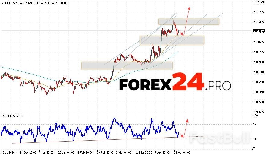 EUR/USD Forecast Euro Dollar for April 25, 2025 suggests an attempt to develop a bearish correction of the pair and a test of the support area near the level of 1.1345. Where should we consider the upward rebound in the price of the Euro Dollar currency pair and an attempt to continue the growth of the asset on the market to the area above the level of 1.1745. An additional signal in favor of the instrument’s rise on the Forex market will be a test of the support line on the relative strength indicator (RSI). The cancellation of the growth option for the EUR/USD pair will be a drop in quotes and a breakout of the 1.1145 level. This will indicate a breakout of the support area and a continuation of the fall of the currency pair on Forex to the area below the 1.1065 level.