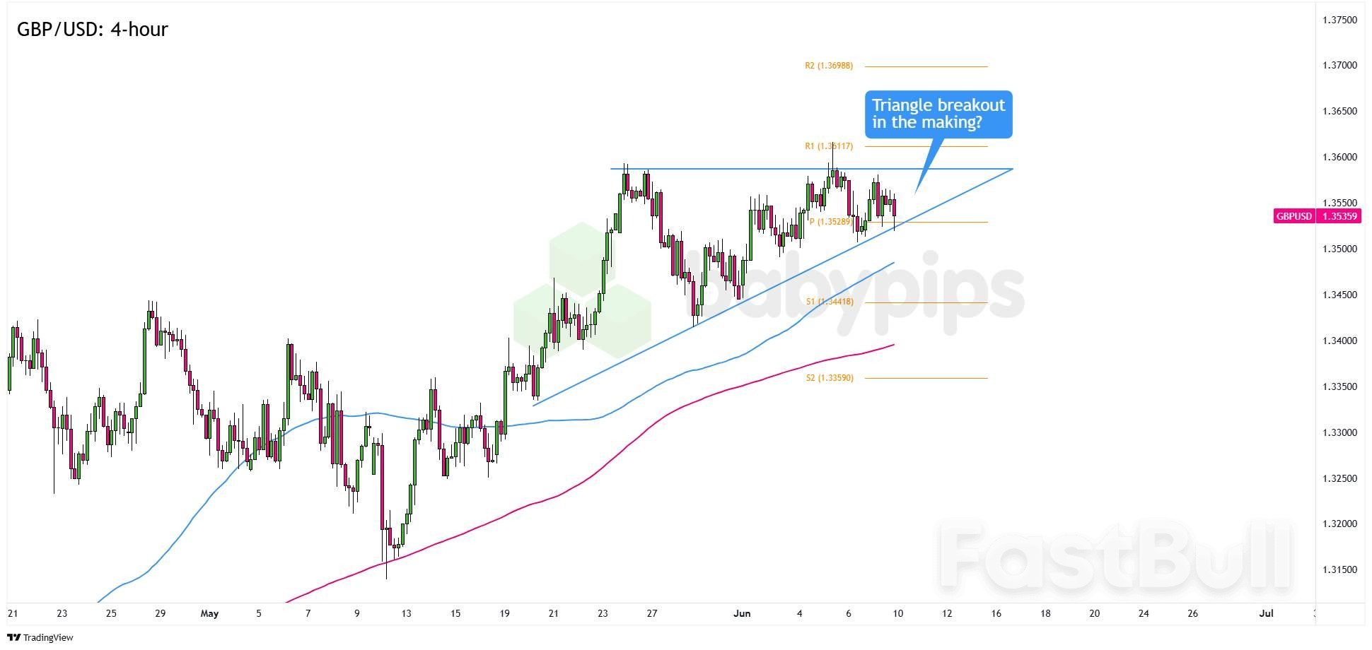 The rising trend line support remains intact for now, aligning with the 1.3529 Pivot Point.
