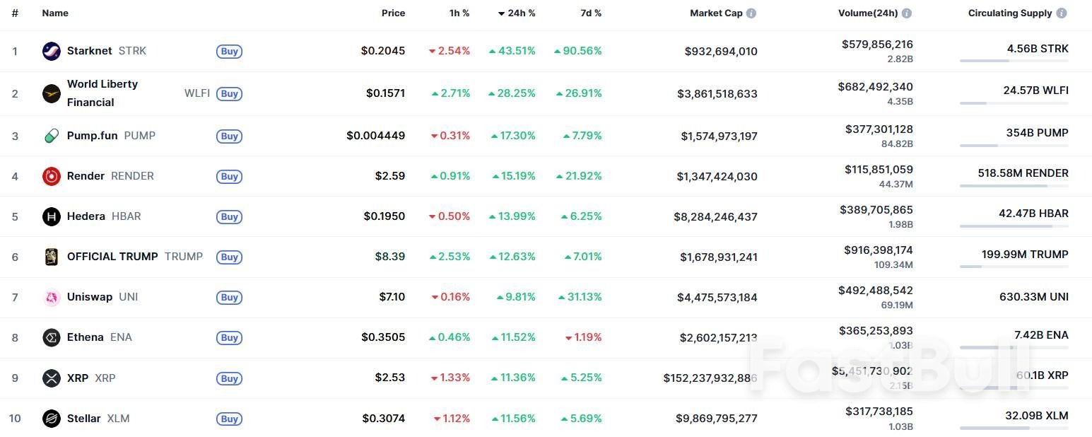 Cryptocurrency markets saw a rebound after the report. The Starknet (STRK) token rose over 43% as the day's biggest winner, followed by the Trump-backed World Liberty Financial (WLFI) token, up 28% over the past 24 hours, according to CoinMarketCap data.