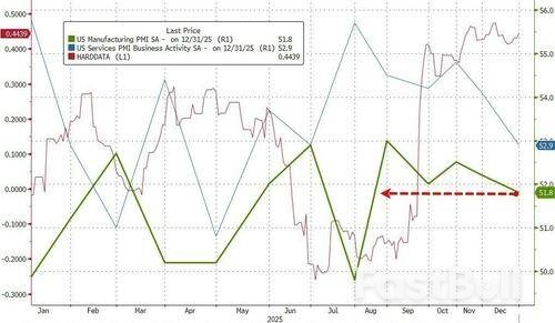 ...and this morning brings more weakness as S&P Global's US Manufacturing PMI (final print for December) dipped to 51.8 - its lowest since July (the only contractionary - sub-50- month of 2025)...