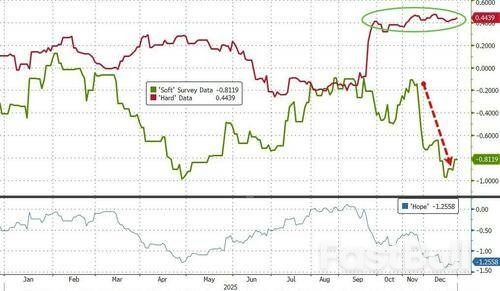 With 'hard' data showing resilience into year-end, 'soft' survey data has cratered (not helped by the government shutdown)...