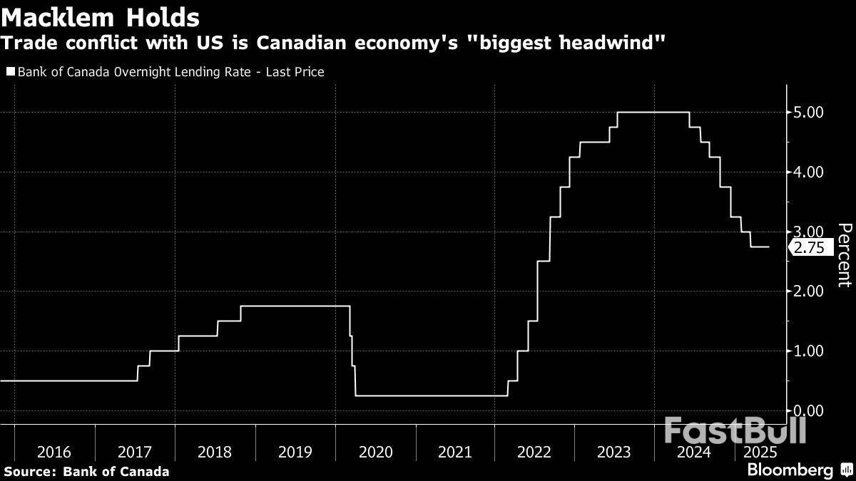 Officials led by governor Tiff Macklem kept the policy rate at 2.75% on Wednesday, matching expectations of markets and the majority of economists in a Bloomberg survey.