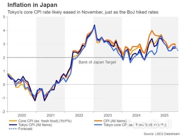 Following the Bank of Japan's rate hike in December, the focus is now on how soon the next increase will come. The BoJ will publish the Summary of Opinions of that meeting on Monday, December 29, but before that, any uptick in inflationary pressures could lift BoJ rate hike odds, boosting the yen.
