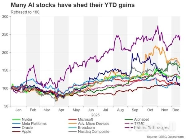 Still, this year's slightly prolonged duration of holiday-thin liquidity increases the risk of a negative AI-related headline triggering a new round of selloff in tech stocks if fresh doubt is cast on valuations.