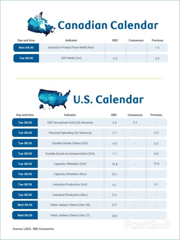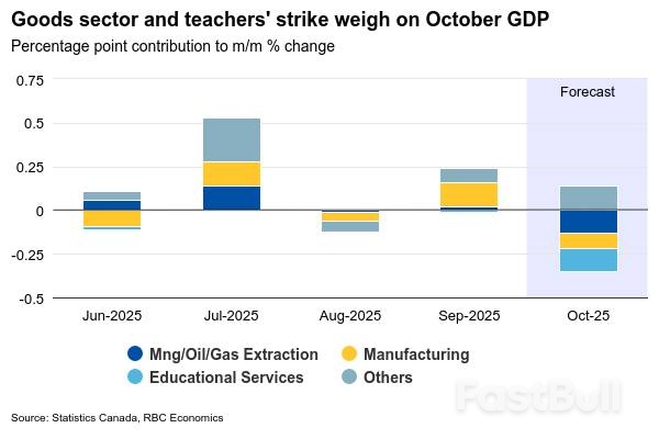 Canada's gross domestic product report for October on Tuesday will mark Statistics Canada's final major data release of 2025, and we anticipate a 0.2% decline in growth.