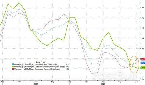 "Despite some signs of improvement to close out the year, sentiment remains nearly 30% below December 2024, as pocketbook issues continue to dominate consumer views of the economy," Joanne Hsu, director of the survey, said in a statement.
