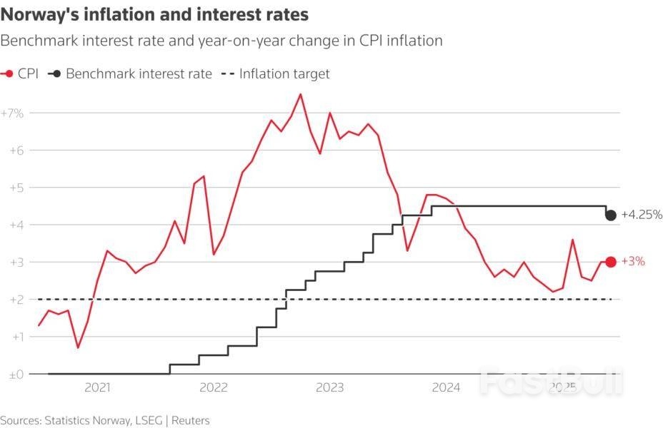 Norway's central bank cut rates by 25 bps to 4.25% last month, its first reduction since 2020 but with only one more fully priced for 2025.
