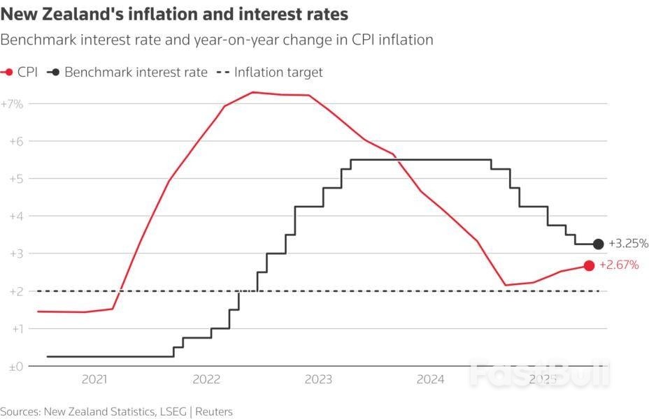 The Reserve Bank of New Zealand, which has cut rates by 225 bps already this cycle, held borrowing costs steady earlier this month but said it expected to loosen monetary policy if price pressures continued to ease as expected.