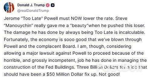 After several days without any direct attack on Powell, Trump resumed the onslaught and said he’s considering allowing a lawsuit against the Fed chair related to the building work at the central bank’s buildings.