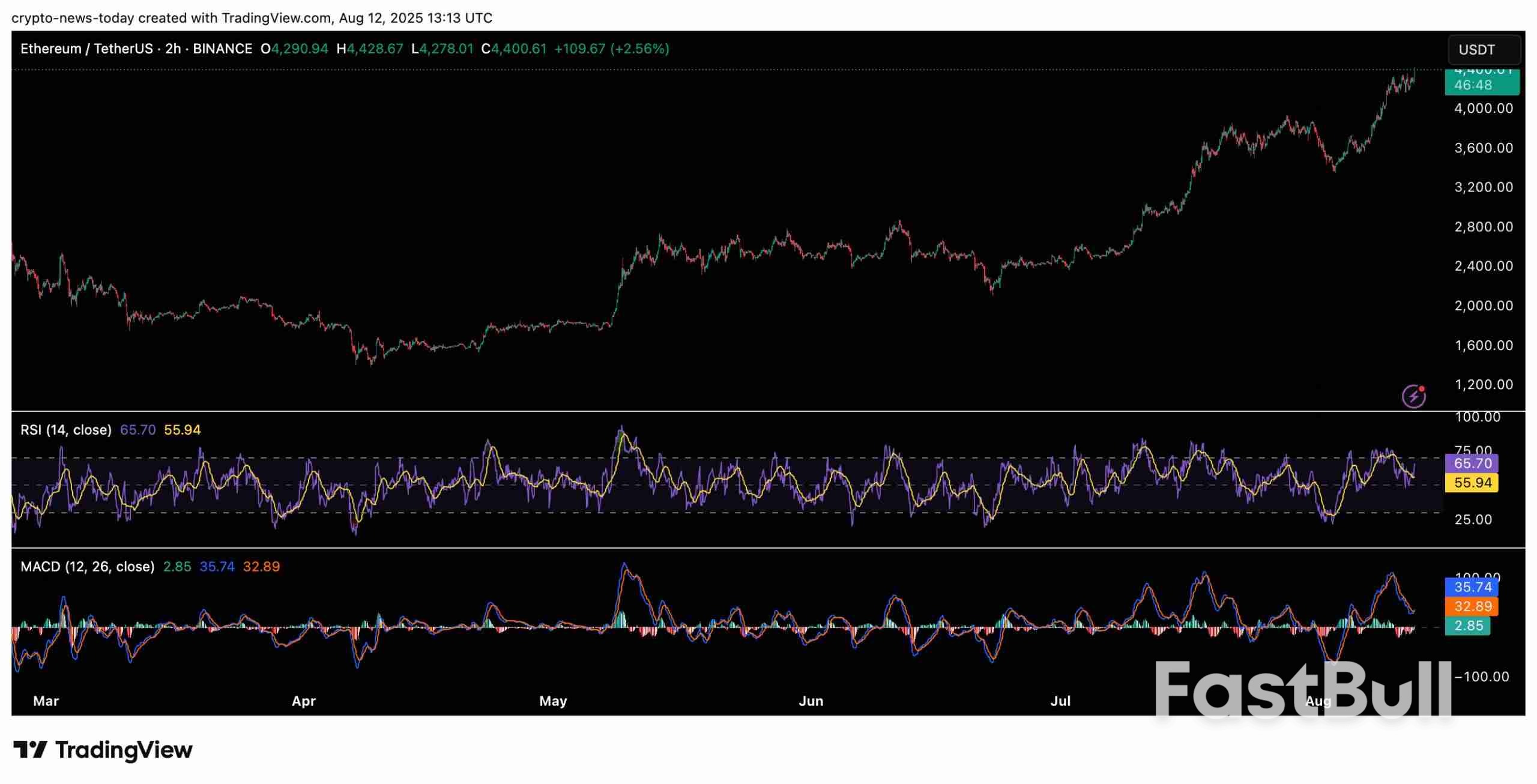 On the technical front, ETH’s price has broken above the $4,300 resistance level, with the Relative Strength Index (RSI) hovering near 66, signaling strong but not yet overbought momentum. The MACD remains in positive territory, supporting the bullish trend. Sustaining above $4,350 could open the door for a push toward the all-time high region near $4,800.