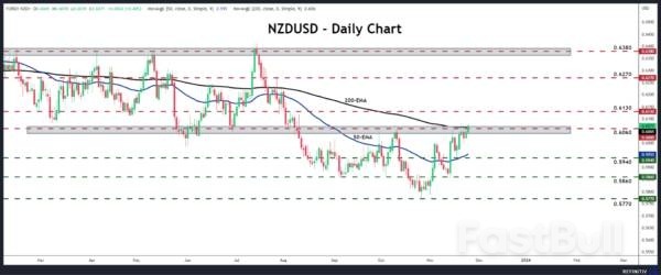 What’s more, it will be interesting to see whether policymakers will incorporate into their forecasts the implications of a new government for the macroeconomic outlook. An official agreement has yet to be signed, but the new coalition is more likely to be led by the National Party, which promised less spending than the previous Labor-led government, but also tax cuts, which is an inflationary policy. It also called for a change in how the RBNZ conducts policy, arguing that the dual mandate should be dropped and suggesting the adoption of a stricter inflation targeting. This means that if the Bank switches to a 2% objective like other major central banks, policy may need to stay restrictive for longer than previously estimated to achieve that target. According to the RBNZ’s inflation projections, inflation would not be at 2% even in 2 years.
