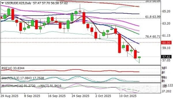 Oil price fell to the lowest in five months and eyes key supports at $55.40/12 (2025 lows posted in Apr/May) which also formed a double bottom, ahead of subsequent strong rally.