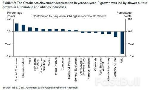 Incorporating October-November activity data, Goldman's GDP tracking model based on the production approach points to a small downside risk to our Q4 real GDP growth forecast of 4.5% yoy.