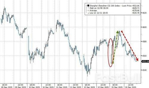 Finally, we note that the initial downturn in Chinese stocks was quickly bid back into positive territory after the 'bad data' as it appeared 'bad news' would be 'good news' from a 'most stimmies' perspective, but Xi's rant dragged stocks down to end the day in the red...