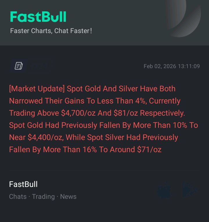 [Market Update] Spot Gold And Silver Have Both Narrowed Their Gains To Less Than 4%, Currently Trading Above $4,700/oz And $81/oz Respectively. Spot Gold Had Previously Fallen By More Than 10% To Near $4,400/oz, While Spot Silver Had Previously Fallen By More Than 16% To Around $71/oz