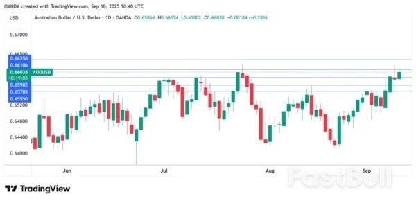 Австралийский доллар продолжает торговаться около отметки 0,66, приближаясь к трёхнедельным максимумам. На европейской сессии пара AUD/USD торгуется на уровне 0,6604, увеличившись за день на 0,30%.