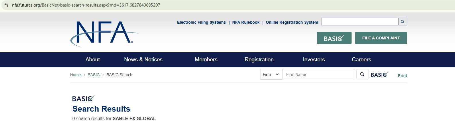 Sable FX Global อ้างว่าเป็นบริษัทการเงินที่มีฐานอยู่ในสหราชอาณาจักร แต่อ้างว่าได้รับอนุญาตจาก National Futures Association (NFA) และจดทะเบียน MSB กับ Financial Crimes Enforcement Network (FinCEN) ในสหรัฐอเมริกา แพลตฟอร์มนี้ค่อนข้างใหม่ โดยจดทะเบียนโดเมนในเดือนพฤษภาคม 2567 ซึ่งไม่ใช่สัญญาณที่ดีนัก เป็นเรื่องแปลกที่บริษัทสัญชาติอังกฤษไม่ได้จดทะเบียนในสหราชอาณาจักร แต่กลับอ้างกฎระเบียบของสหรัฐอเมริกาแทน การค้นหาข้อมูลใน Financial Conduct Authority (FCA) ในสหราชอาณาจักรไม่พบบันทึกใดๆ ที่ยืนยันความถูกต้องของ Sable FX Global ในทำนองเดียวกัน NFA ในสหรัฐอเมริกาก็ไม่ได้ให้อำนาจแก่ Sable FX Global เช่นกัน การลงทะเบียนที่เราพบมีเพียง FinCEN เท่านั้น แต่สิ่งสำคัญคือ FinCEN ชี้แจงว่าการลงทะเบียนนี้ไม่ได้หมายความว่าได้รับการรับรองจากรัฐบาลหรือใบรับรองความถูกต้อง และไม่ได้ตรวจสอบข้อมูลผู้จดทะเบียนด้วยโดยพื้นฐานแล้ว Sable Fx Global ไม่ได้อยู่ภายใต้การกำกับดูแลของหน่วยงานกำกับดูแลใดๆ การฝากเงินของนักลงทุนไว้ใน Sable Fx Global มีความเสี่ยงสูง เนื่องจากไม่มีกฎหมายคุ้มครองเงินทุนSable Fx Global ดูเหมือนเป็นการหลอกลวง