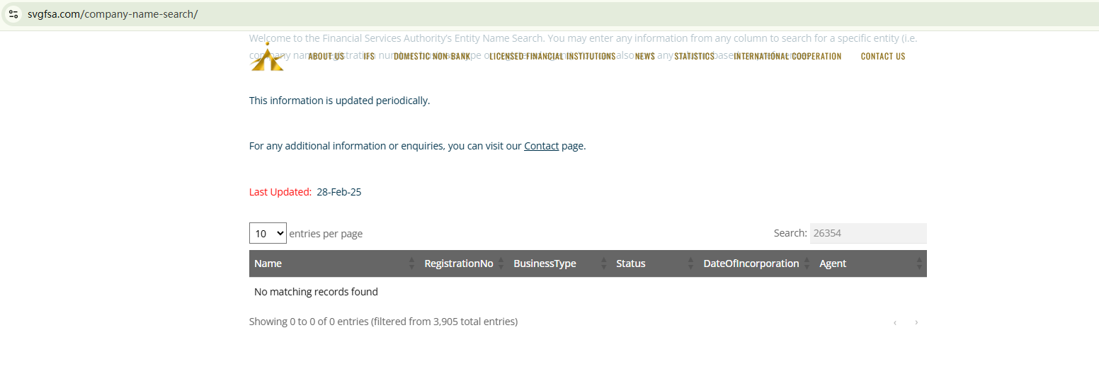 เว็บไซต์ของ Almas Financial ไม่สามารถใช้งานได้ในขณะนี้ ไม่มีหมายเลขทะเบียน 26354BC2021 ที่อ้างสิทธิ์ซึ่งออกโดยหน่วยงานบริการทางการเงินแห่งเซนต์วินเซนต์และเกรนาดีนส์ (SVG FSA) สัญญาณทั้งหมดนี้ชี้ให้เห็นถึงความเสี่ยงที่สําคัญที่เกี่ยวข้องกับ Almas Financial นักลงทุนควรได้รับทราบเกี่ยวกับการพัฒนาและระมัดระวังอยู่เสมอ