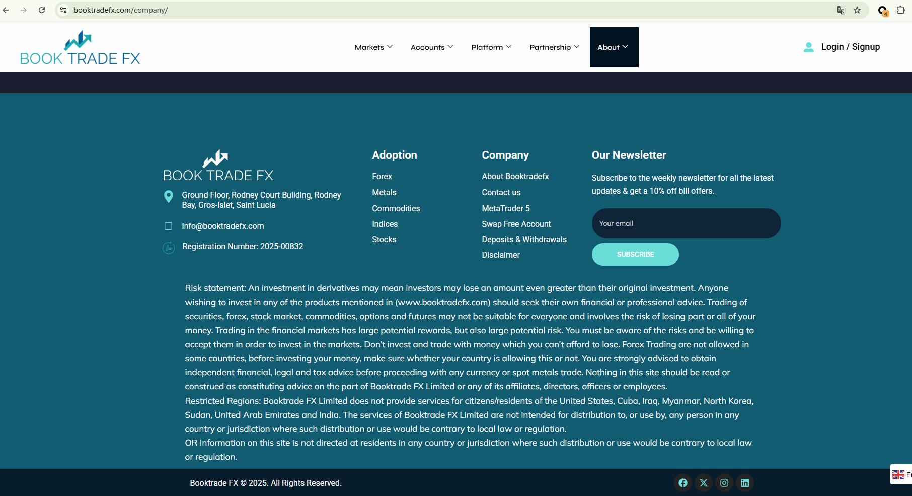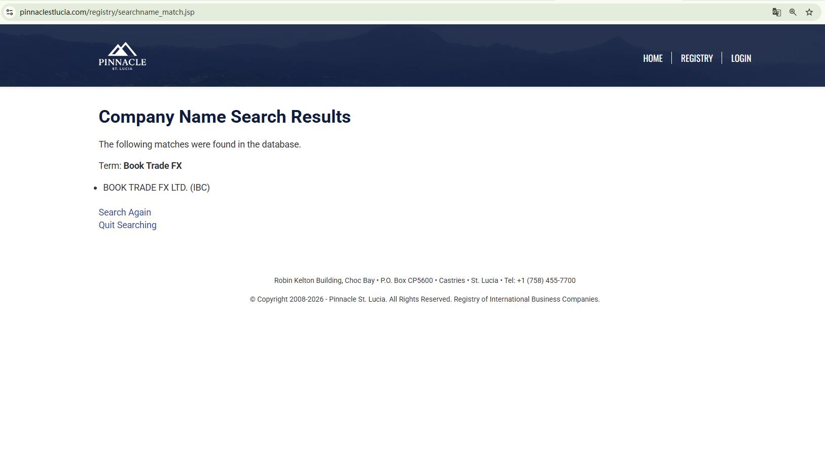 Although Book Trade FX Ltd. can be found in the registry of the Saint Lucia International Financial Centre (IFC), this registration merely grants it International Business Company (IBC) status. It is crucial to understand that an IBC registration does not constitute a valid license for forex trading. Furthermore, the Saint Lucia IFC does not possess the jurisdiction or authority to regulate forex brokerage activities.