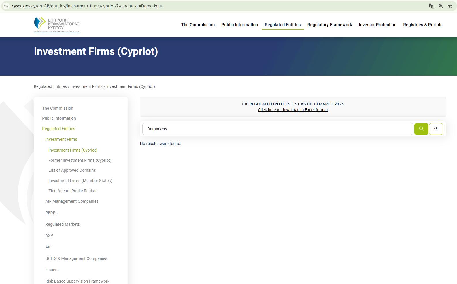 Additionally, we conducted a search of the official register of the Cyprus Securities and Exchange Commission (CySEC) using all available information, but found no record of Damarkets Ltd. or any related company. The absence of regulation is a significant red flag for a potentially fraudulent operation. Therefore, we strongly advise you not to share personal information or deposit funds with this platform.