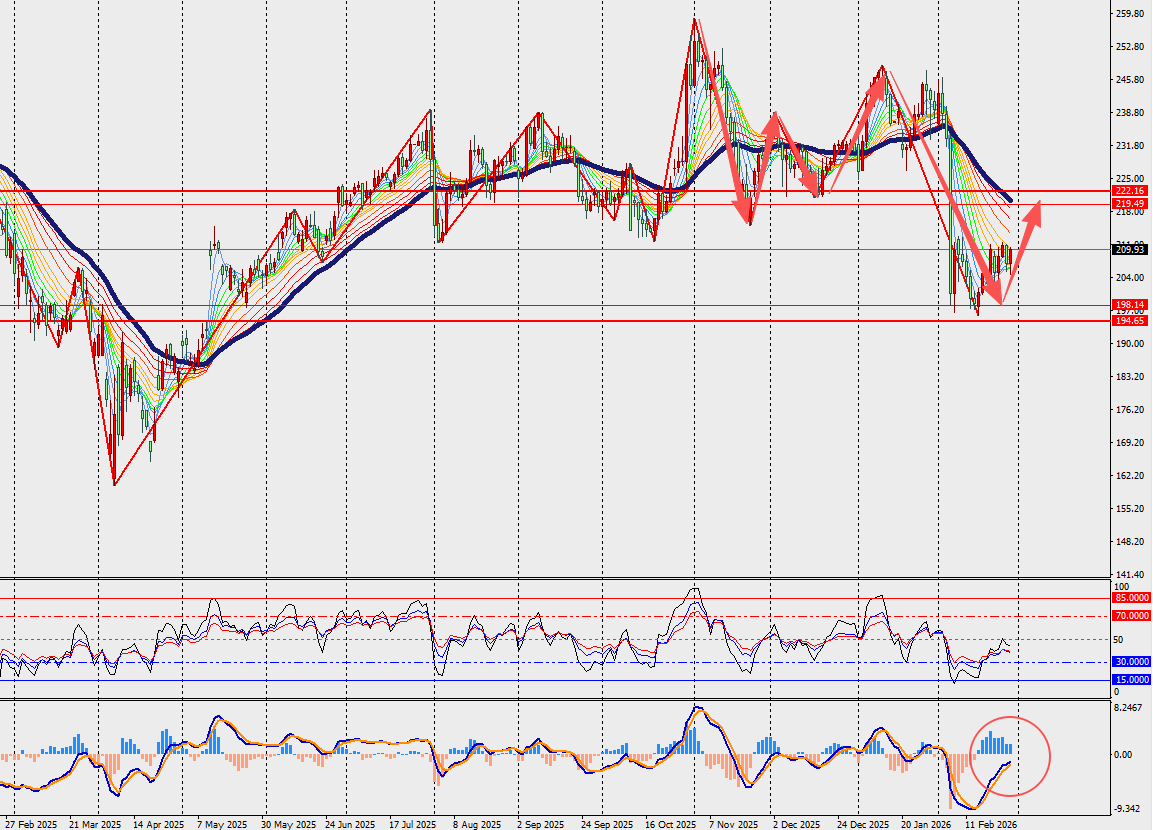 第一阻力位:220.00                           第一支撑位:197.00