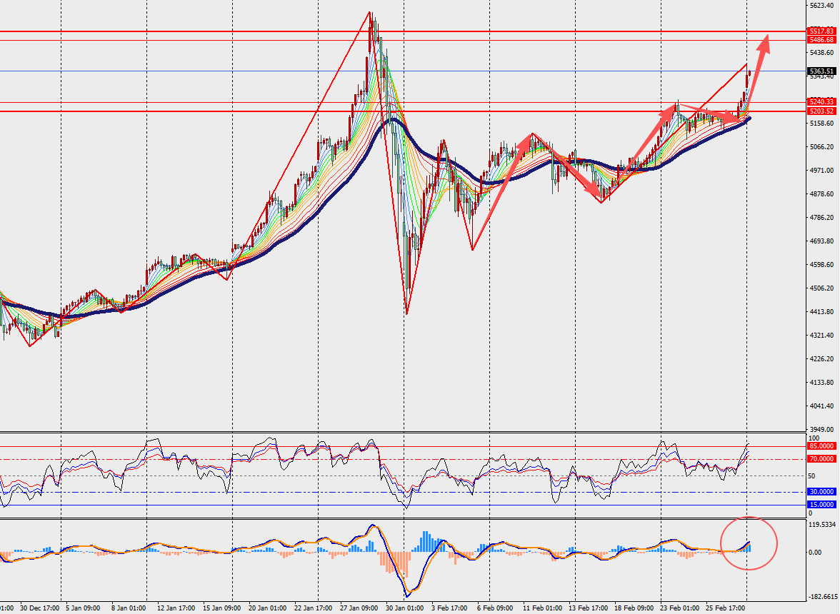 第二阻力位:5400.00                          第二支撑位:5327.00