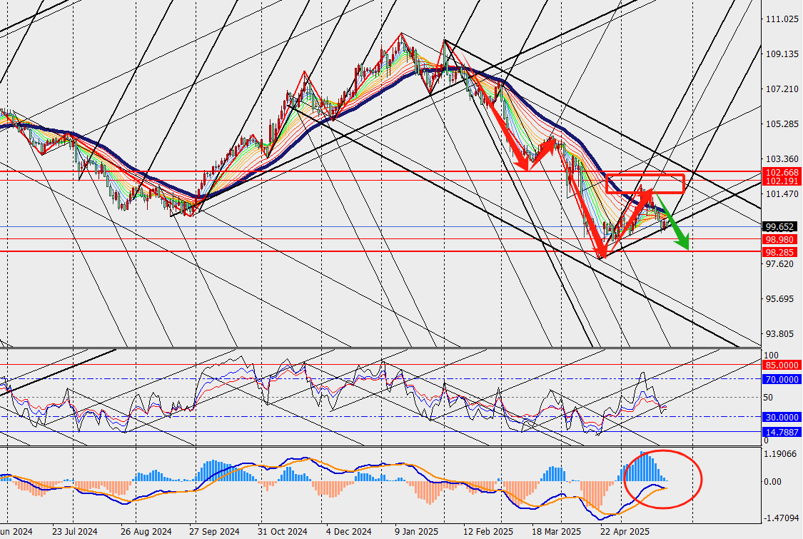 美元指数震荡回落,MACD双线和量能柱在零轴附近缩量。经济学家预计,今年GDP增速将放缓至1%以下,剔除波动较大的食品和能源成分的核心个人消费支出(PCE)通胀预计将上涨约3.5%。相比之下,2024年经济增长2.8%,而核心PCE通胀上涨2.8%。