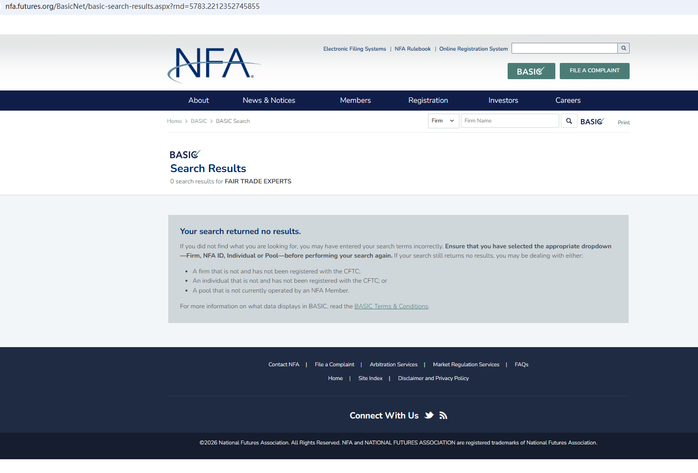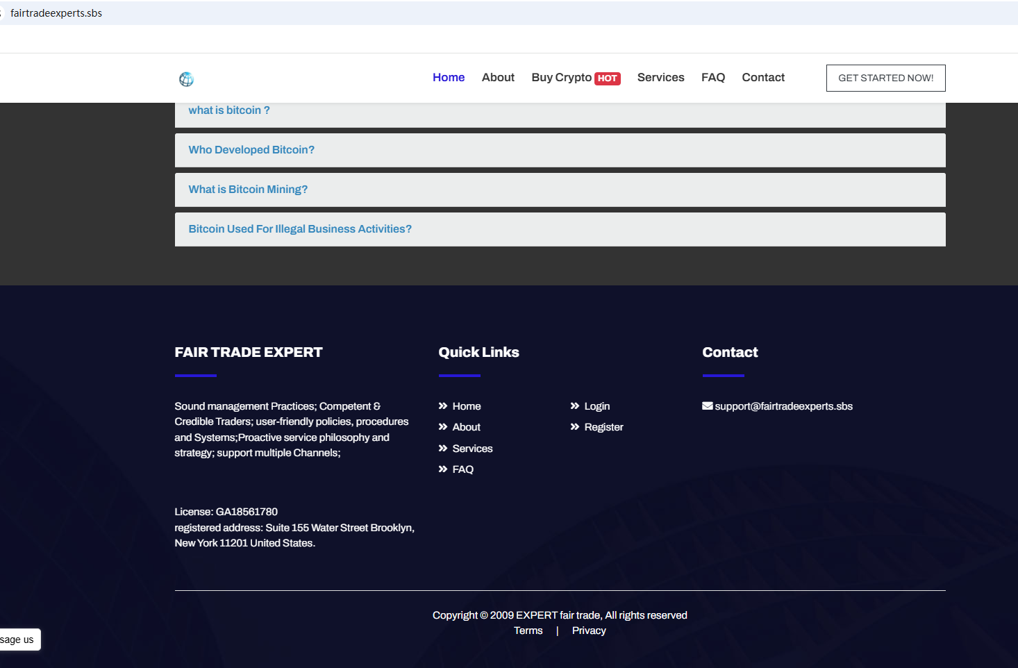 จากข้อมูลบนเว็บไซต์ บริษัทนี้ตั้งอยู่ในสหรัฐอเมริกา จากการตรวจสอบไม่พบข้อมูลที่ตรงกันในสมาคมฟิวเจอร์สแห่งชาติ (National Futures Association หรือ NFA) นอกจากนี้ หน่วยงานกำกับดูแลทางการเงิน (Financial Conduct Authority หรือ FCA) ยังได้ออกคำเตือนเกี่ยวกับบริษัท Fair Trade Experts โดยสงสัยว่าบริษัทนี้อาจให้บริการหรือจำหน่ายผลิตภัณฑ์ทางการเงินโดยไม่ได้รับอนุญาตอย่างถูกต้อง