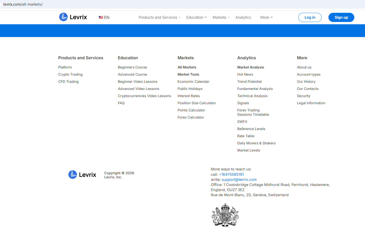 บริษัทดังกล่าวอ้างว่ามีที่อยู่สำนักงานในสหราชอาณาจักรและสวิตเซอร์แลนด์ อย่างไรก็ตาม ไม่พบข้อมูลที่ตรงกันกับหน่วยงานกำกับดูแลทางการเงินของสหราชอาณาจักร (FCA) หรือหน่วยงานกำกับดูแลตลาดการเงินของสวิตเซอร์แลนด์ (FINMA) นอกจากนี้ คณะกรรมการกำกับหลักทรัพย์แห่งบริติชโคลัมเบีย (BCSC) ยังออกคำเตือนเกี่ยวกับ Clone Levrix โดยระบุว่าโบรกเกอร์รายนี้ไม่ได้จดทะเบียนเพื่อซื้อขายหรือให้คำแนะนำเกี่ยวกับหลักทรัพย์หรืออนุพันธ์ในบริติชโคลัมเบีย