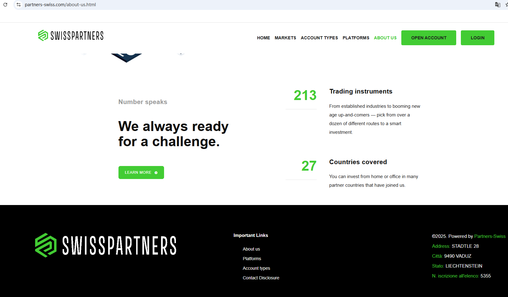 บริษัทดังกล่าวอ้างว่าเป็นบริษัทที่น่าเชื่อถือ แต่ไม่ได้แสดงข้อมูลด้านกฎระเบียบที่ถูกต้องบนเว็บไซต์เพื่อให้ผู้ลงทุนตรวจสอบ นอกจากนี้ คณะกรรมการบริษัทและตลาดหลักทรัพย์ของอิตาลี (CONSOB) ยังสั่งขึ้นบัญชีดำบริษัท Partners Swiss เนื่องจากให้บริการทางการเงินอย่างผิดกฎหมายในอิตาลี