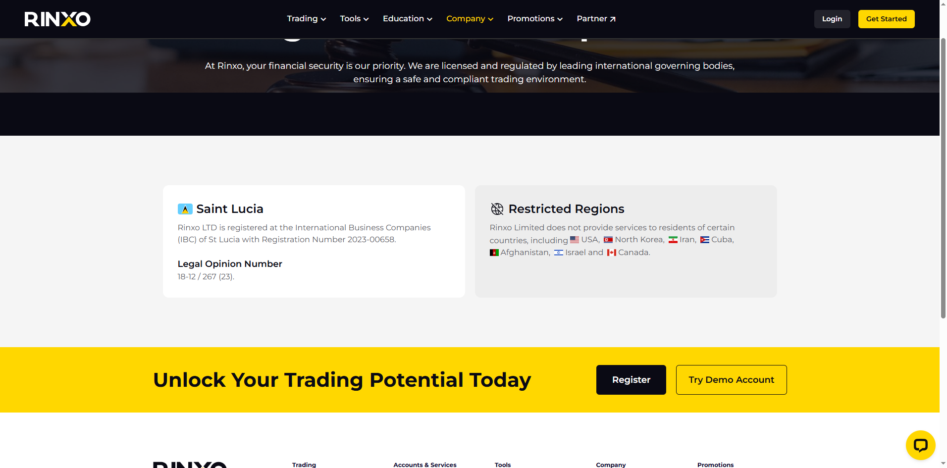 While RINXo claims to operate under Rinxo LTD and states that it is registered as an International Business Company (IBC) in Saint Lucia, our verification confirms that, although a company by that name exists in the Saint Lucia International Financial Centre (IFC) registry, this registration does not constitute a financial license. Importantly, the Saint Lucia IFC does not regulate or authorize forex trading activities. Therefore, presenting this IBC registration as evidence of regulatory oversight is both misleading and inappropriate.
