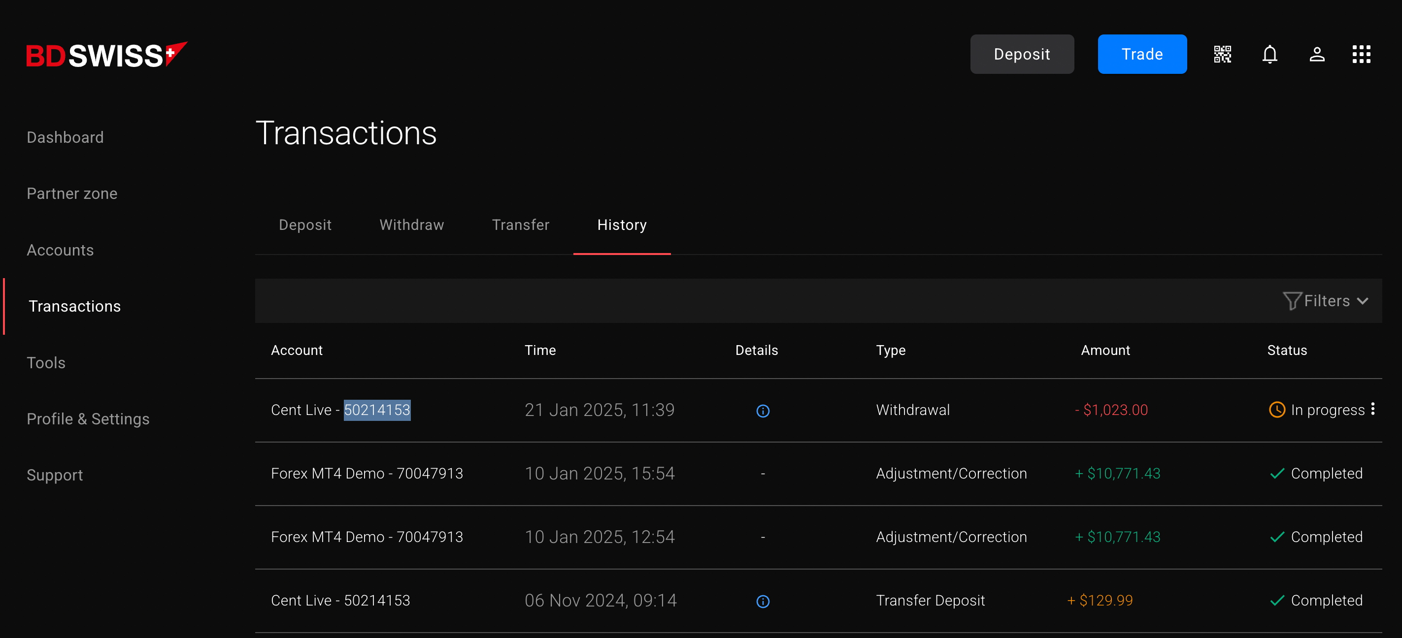 APPLYING FOR for Withdrawal of USD 857.34 – BDSwiss IB Account No. 1741201 - 1 year now