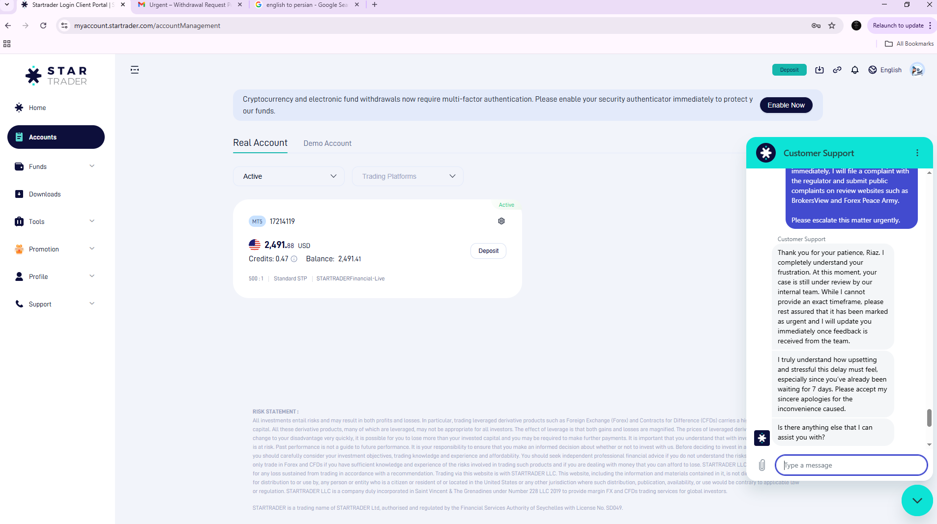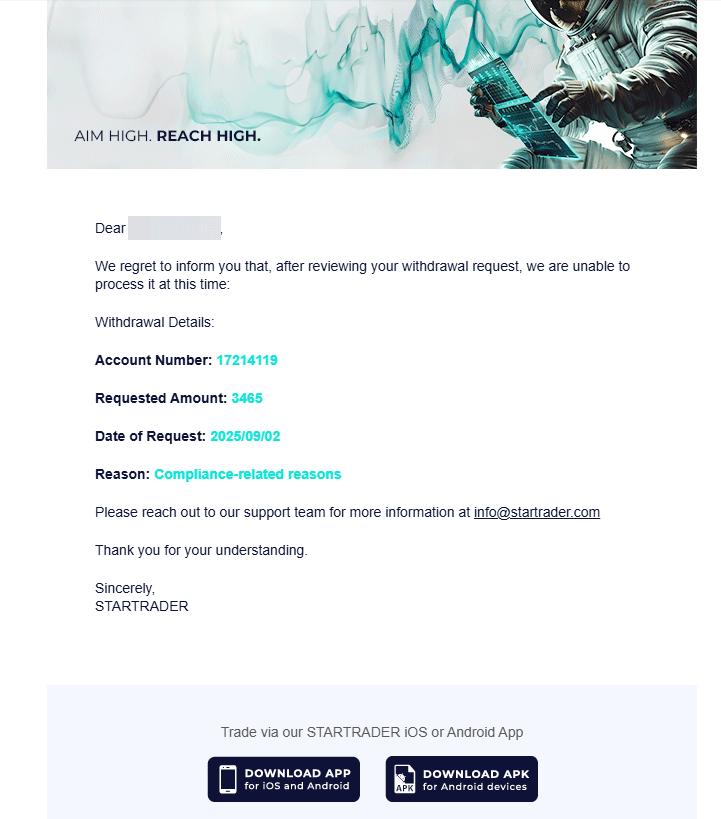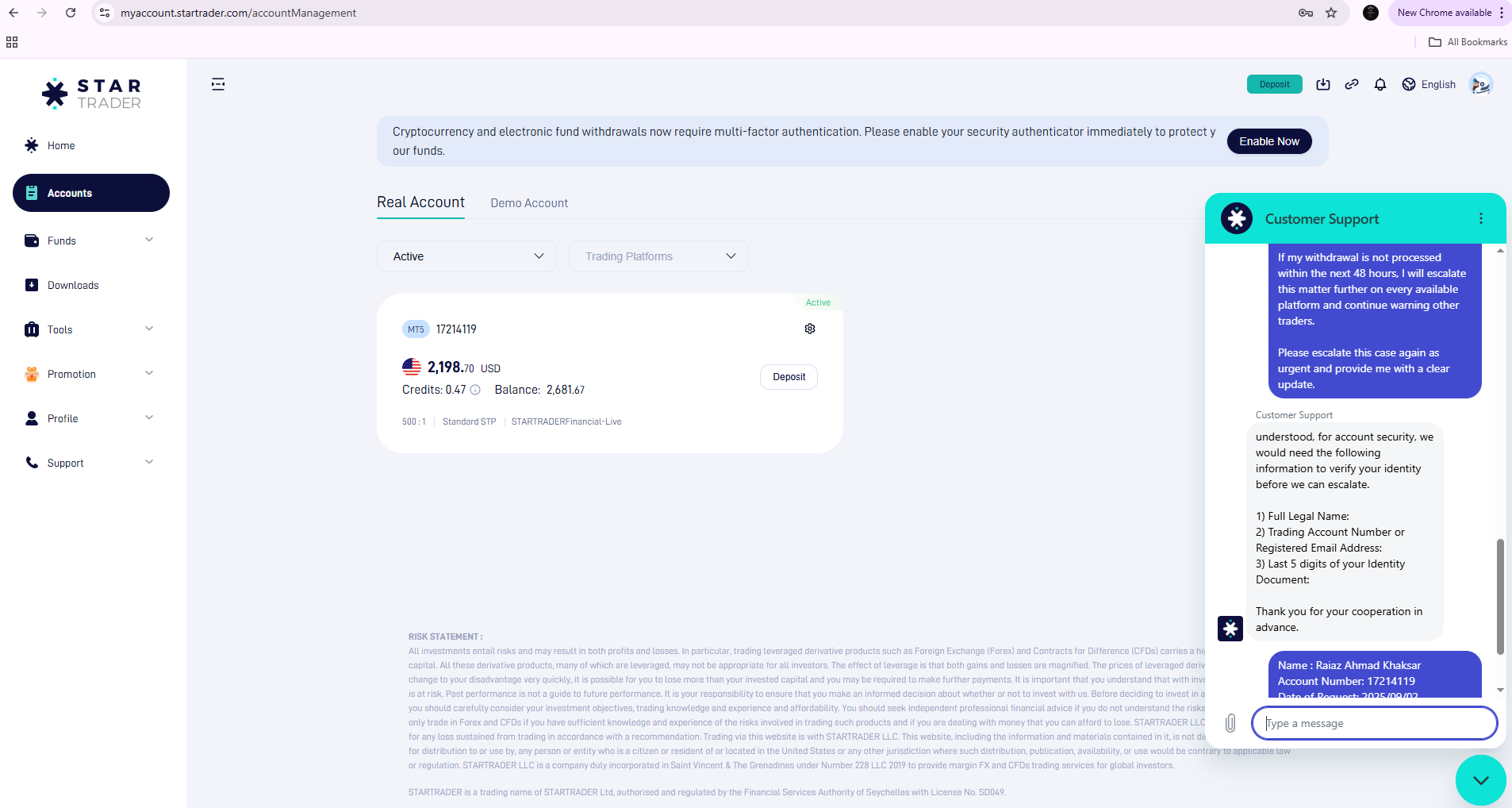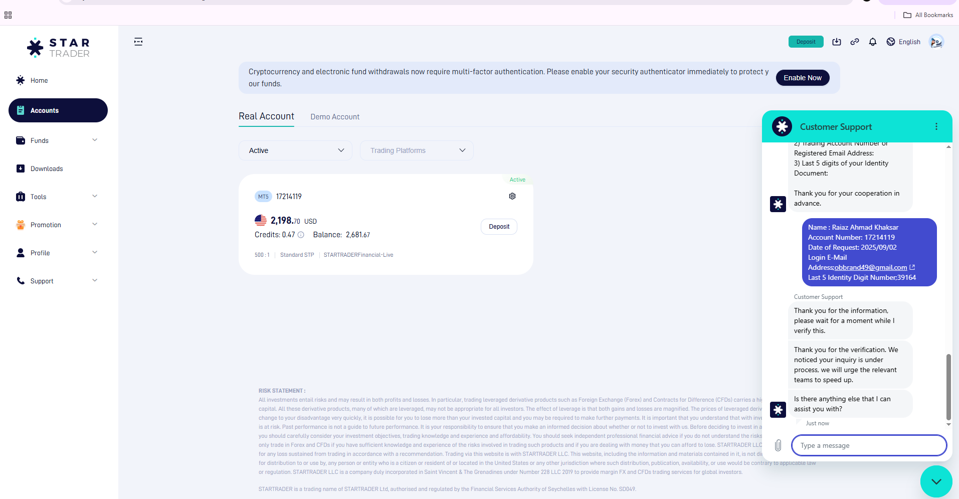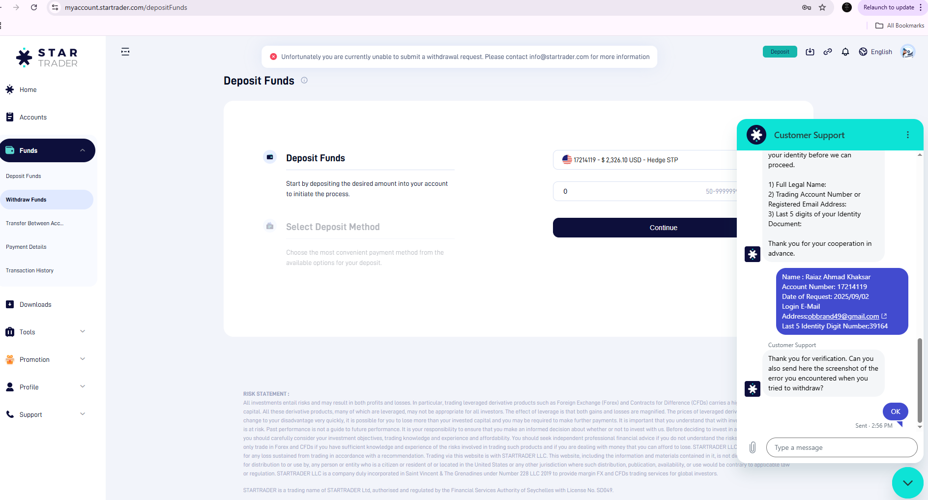 I run a trading academy and had recommended STARTRADER to my students. Due to the prolonged delay and lack of clear communication, my professional credibility and the reputation of my academy are being damaged.