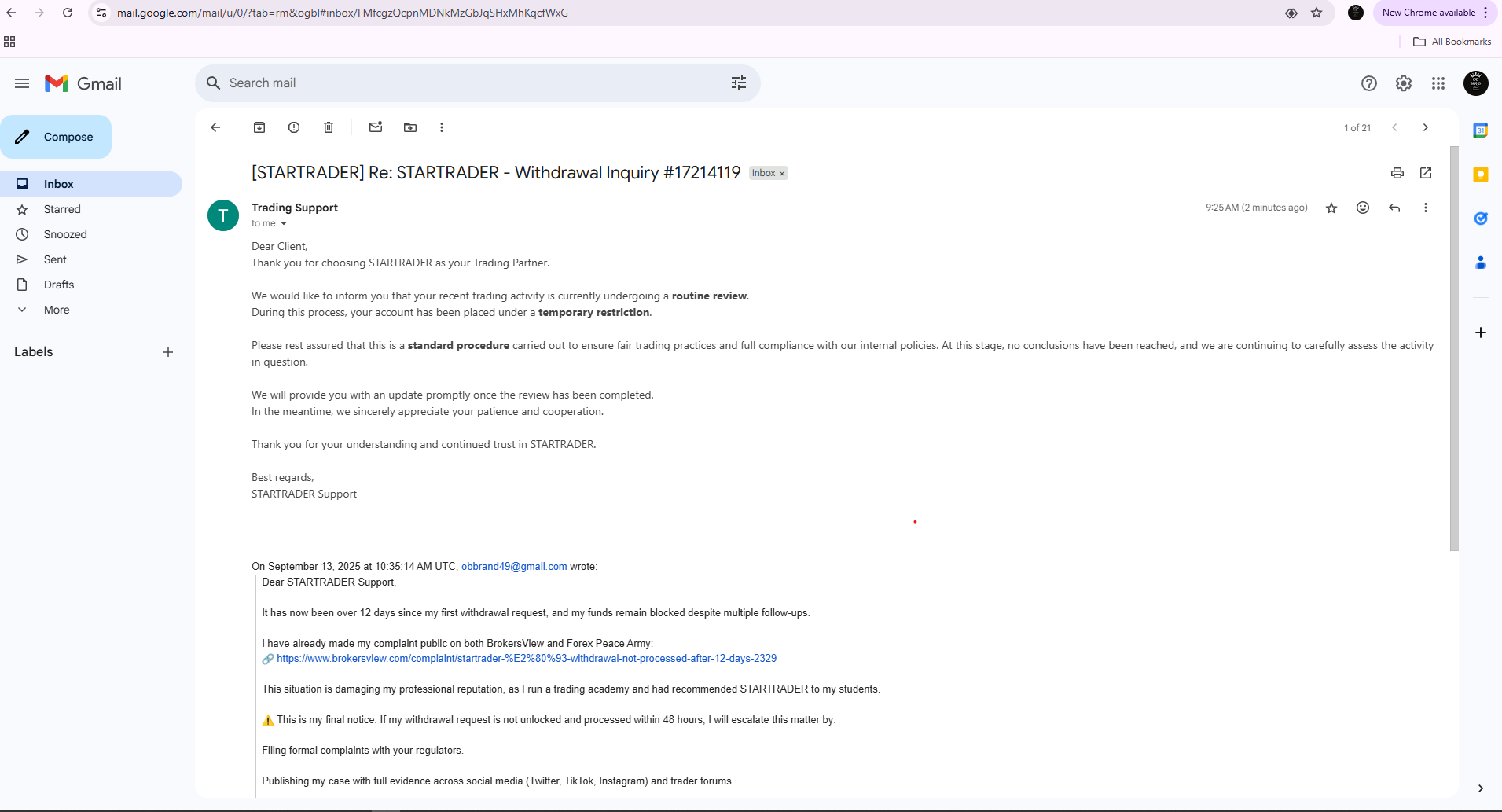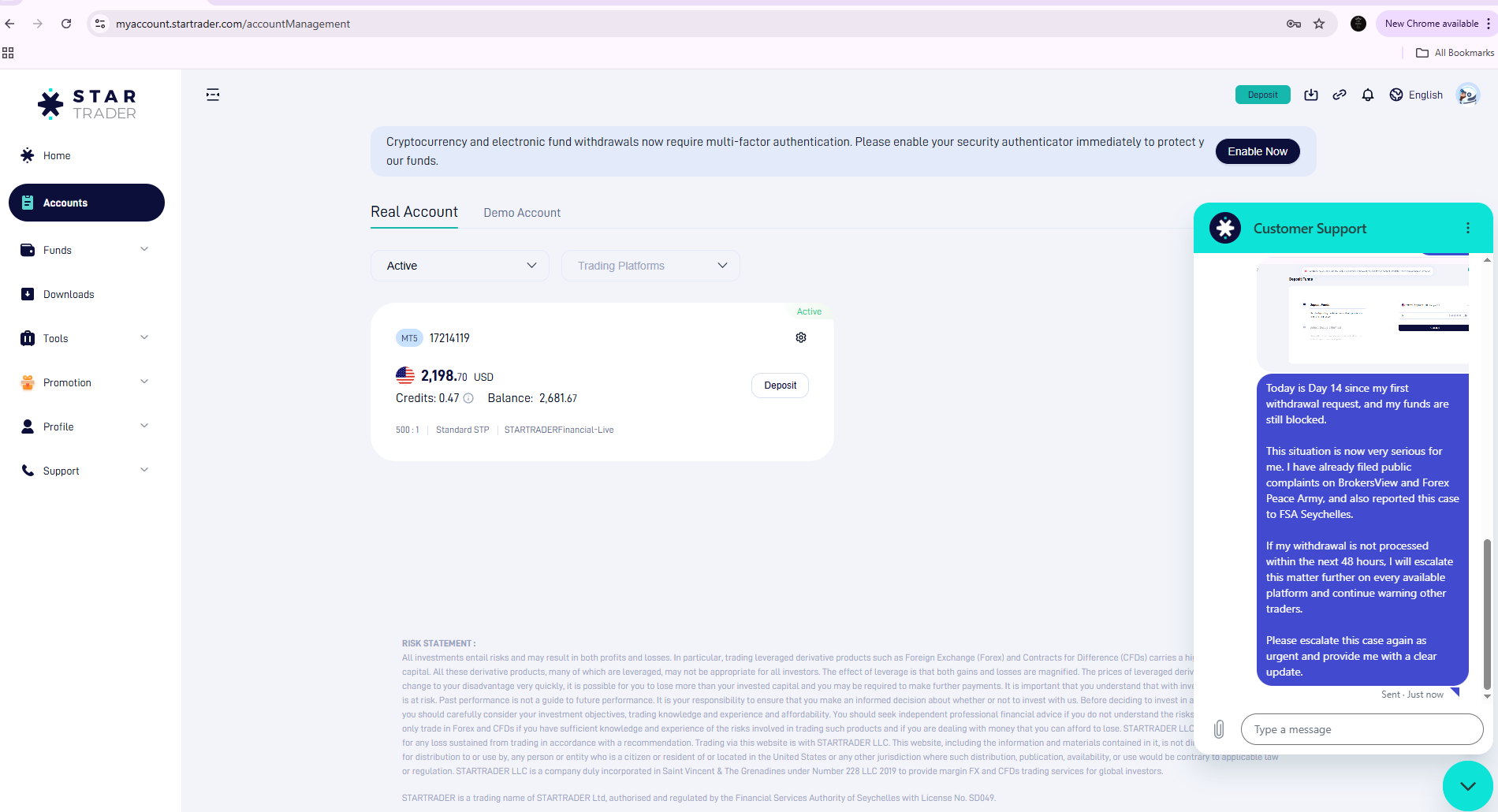 🚨 Today is Day 14 since my first withdrawal request — and STARTRADER still has not released my funds.