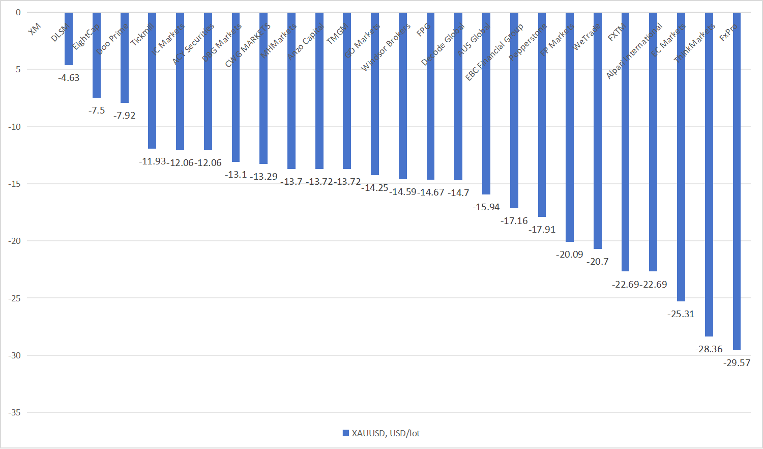 | อันดับ | นายหน้า | EURUSD | GBPUSD | XAUUSD |