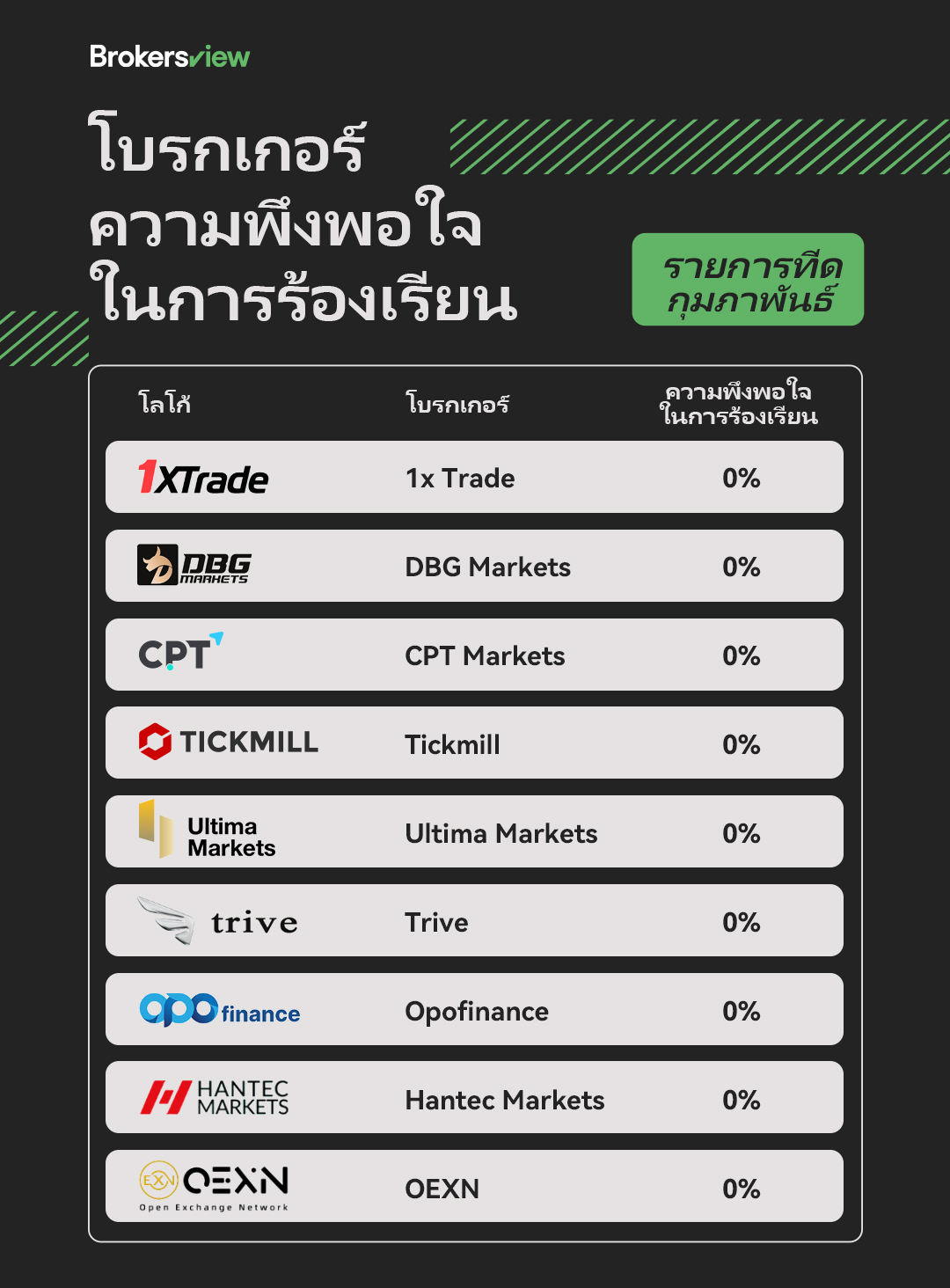คุณสามารถยื่นเรื่องร้องเรียนไปยัง BrokersView ได้ผ่านลิงก์ต่อไปนี้: https://www.brokersview.com/complaint