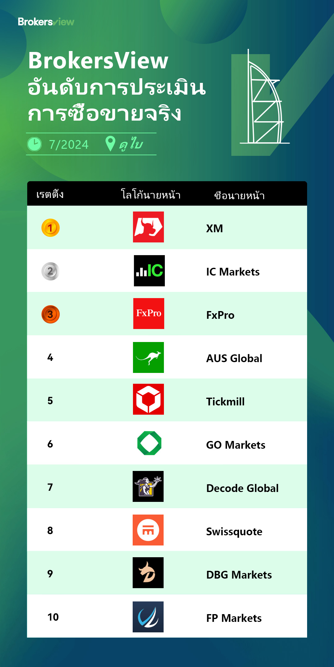 เมื่อเร็วๆ นี้ BrokersView ได้ประเมินโบรกเกอร์ 28 แห่งโดยอิงตามตัวชี้วัดหลัก 6 ประการ ได้แก่ ความเร็วในการทำธุรกรรม ความเสถียร สภาพคล่อง สเปรด สลิปเปจ และดอกเบี้ยข้ามคืน โบรกเกอร์ 10 อันดับแรกในการประเมินรายเดือนของดูไบในเดือนกรกฎาคม ได้แก่:
