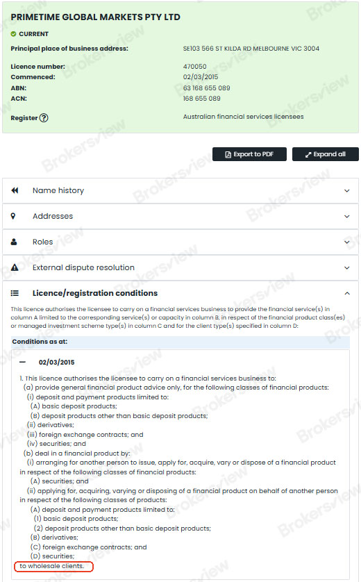 นี่เป็นส่วนหนึ่งของกลยุทธ์ "การเก็งกำไรตามกฎระเบียบ" ของ PGM ที่วางแผนอย่างรอบคอบโดยใช้ชื่อสับสนเพื่อให้นักลงทุนเข้าใจผิดว่าพวกเขากําลังซื้อขายกับหน่วยงานที่ควบคุมโดย ASIC PGM ส่งเสริมใบอนุญาต ASIC ของออสเตรเลียอย่างจริงจัง (หมายเลข 470050) ซึ่งมีอยู่จริง อย่างไรก็ตาม รายละเอียดใบอนุญาตได้เปิดเผยข้อจํากัดที่สําคัญ: อนุญาตให้ให้บริการเฉพาะลูกค้าสถาบันเท่านั้นและไม่สามารถใช้เพื่อให้บริการแก่นักลงทุนรายย่อยได้ นอกจากนี้ ศาลออสเตรเลียได้ตัดสินให้โบรกเกอร์ภายใต้การควบคุมของ ASIC ไม่สามารถให้บริการลูกค้าชาวจีนได้